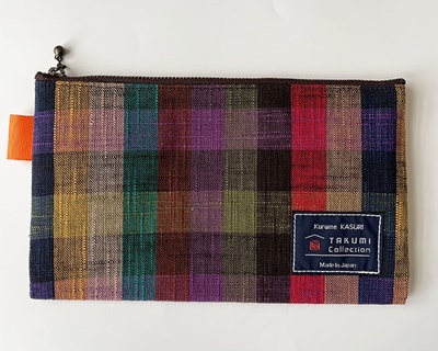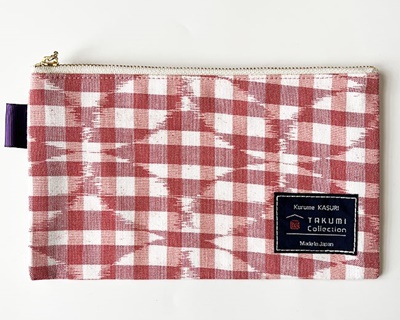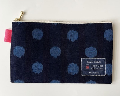TAKUMI Collectionの、久留米絣「ぺたんこポーチ」です。