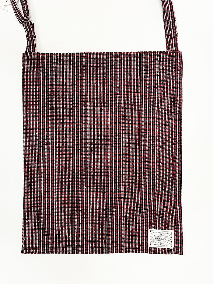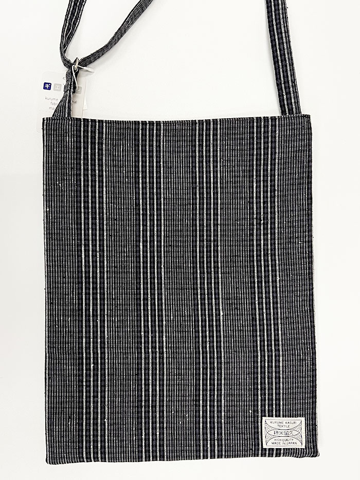 財布、ポーチ、携帯などを入れてお出かけするのにちょうど良いサイズの、久留米絣の斜め掛けバッグです。