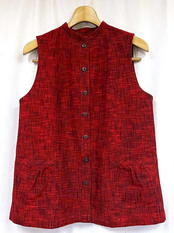 久留米絣反物(タテヨコスラブ無地 赤/黒)です。