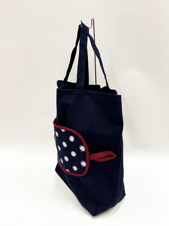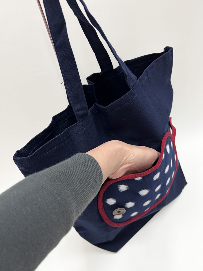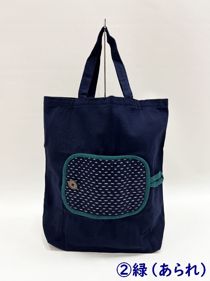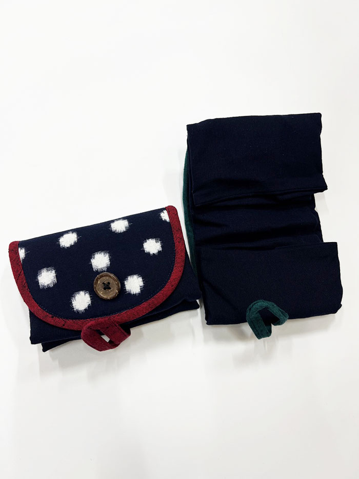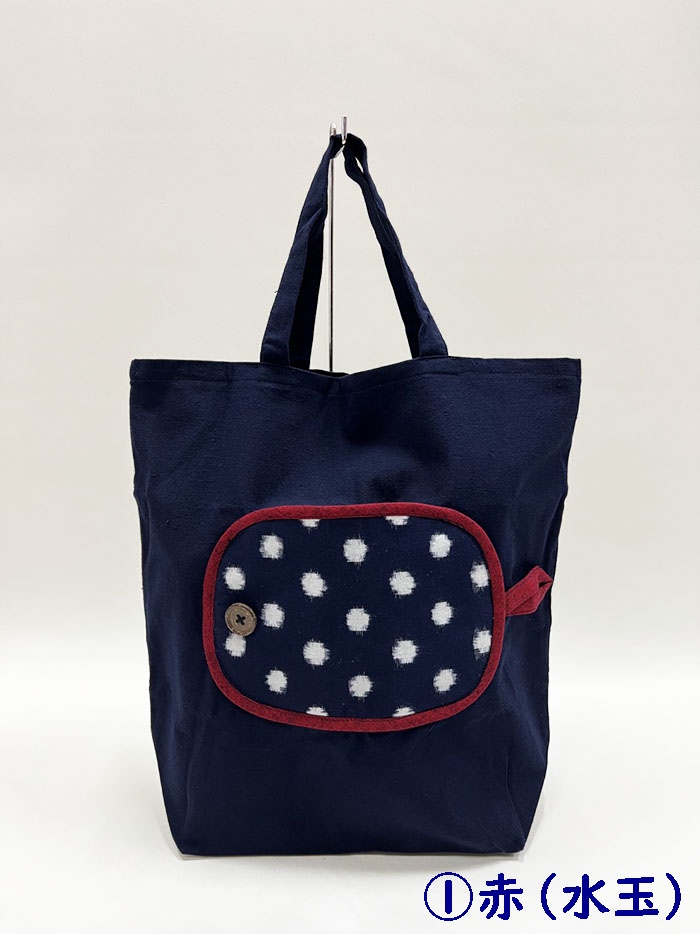 折り畳みできて持ち運びに便利な、久留米絣のエコバッグです。