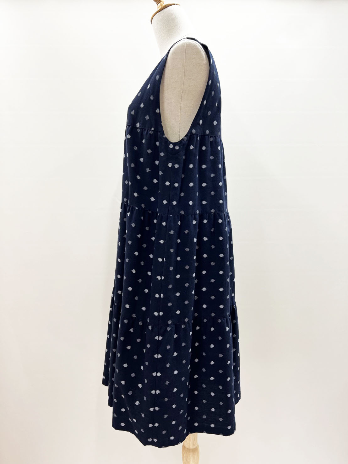 【F1020】久留米絣 前ファスナー ジャンパースカート(水玉 濃紺)