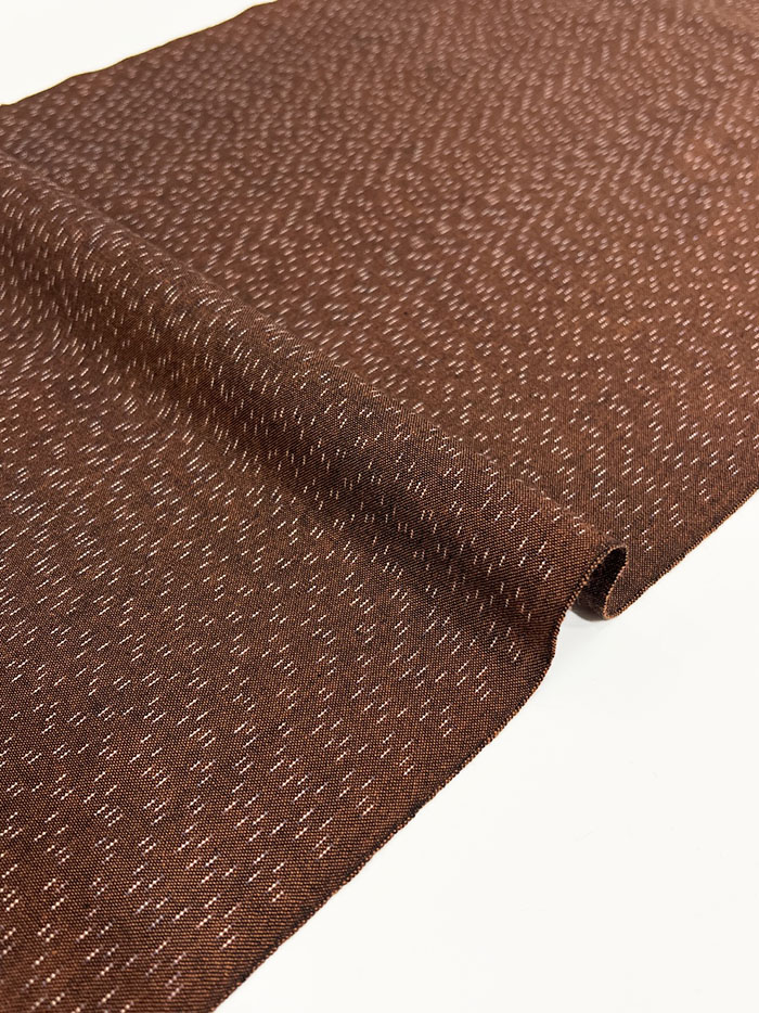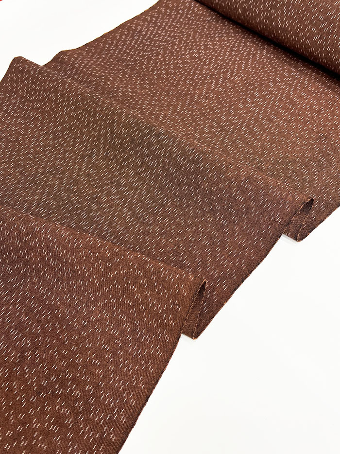 茶色地に白の細い模様が入った、素敵な久留米絣の反物です。
