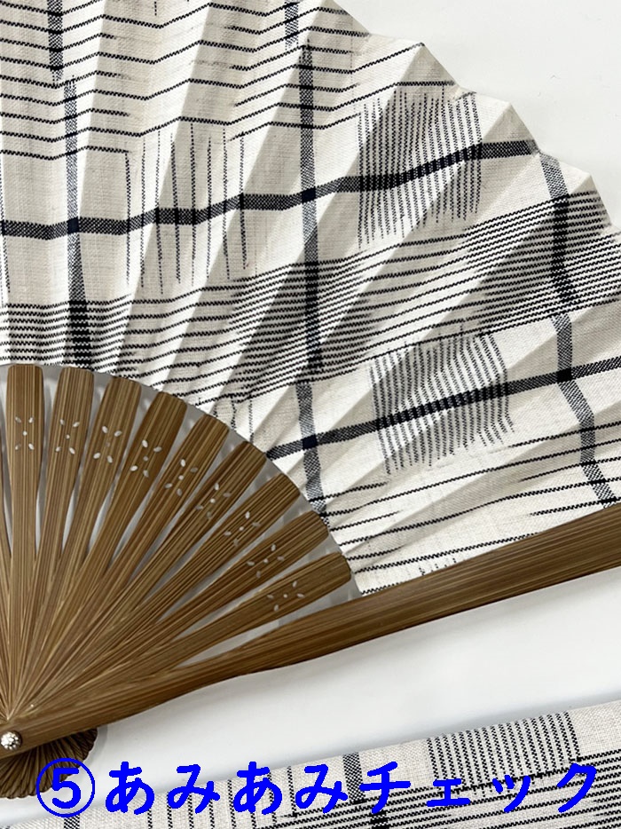 ②白樺マルチカラフル ③ひっかけ十字エメラルドグリーン ④市松紺/ブルー ⑤あみあみチェック脱色 |