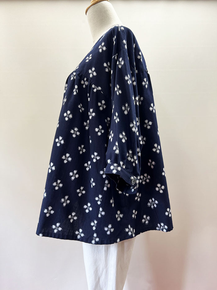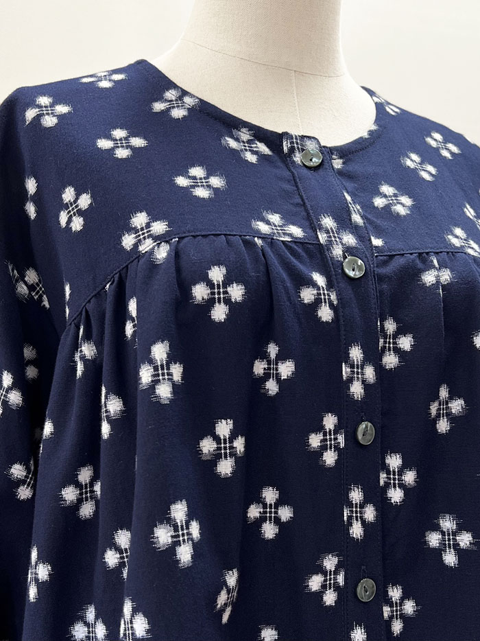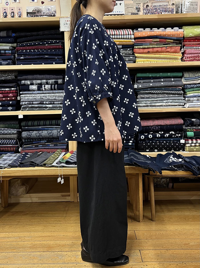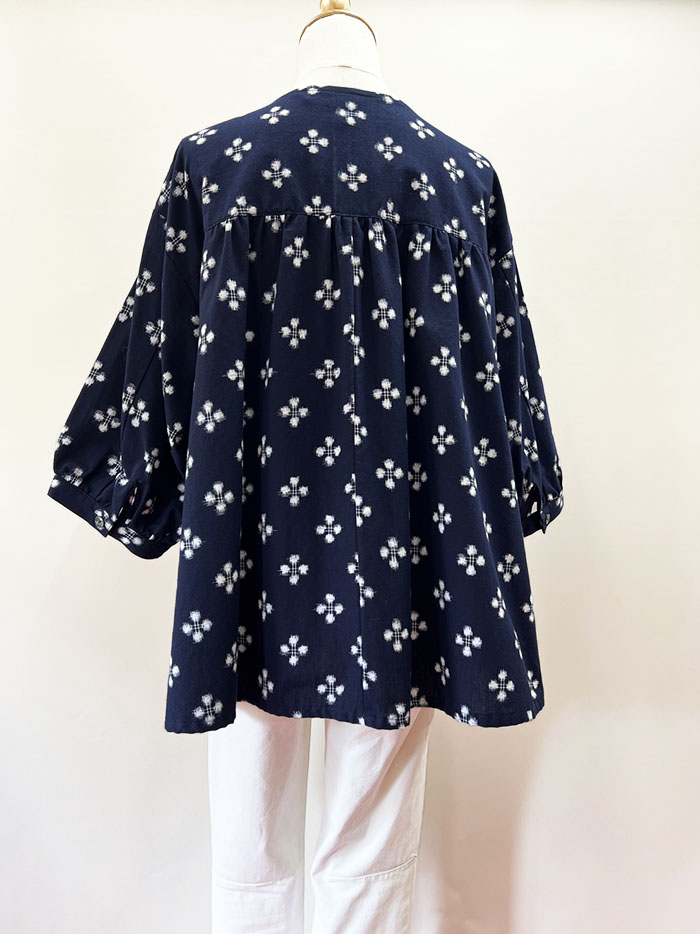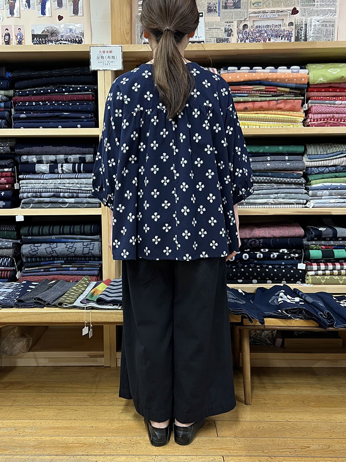 久留米絣(梅鉢柄 濃紺/白)のブラウスです。