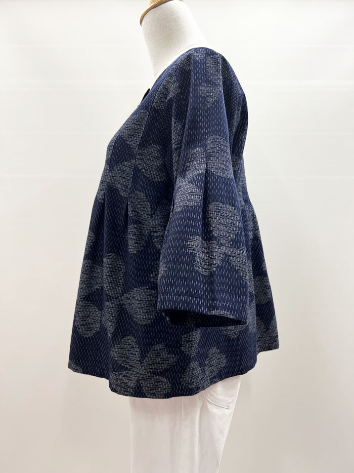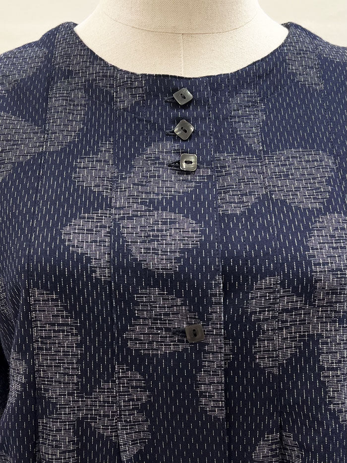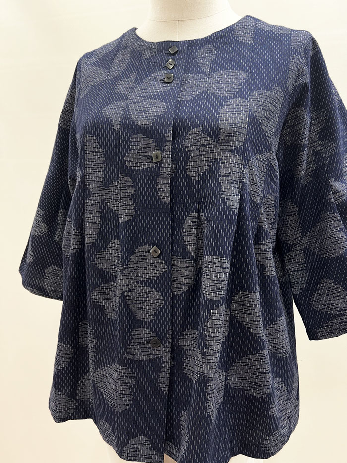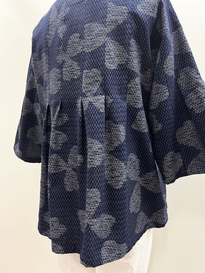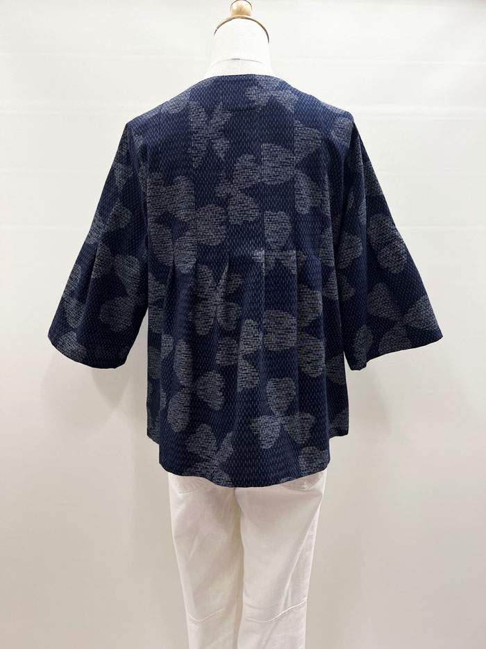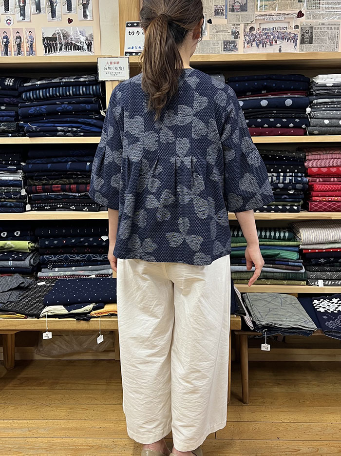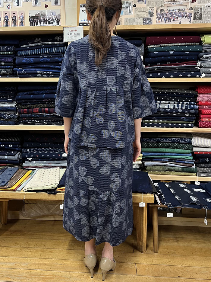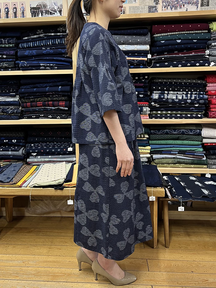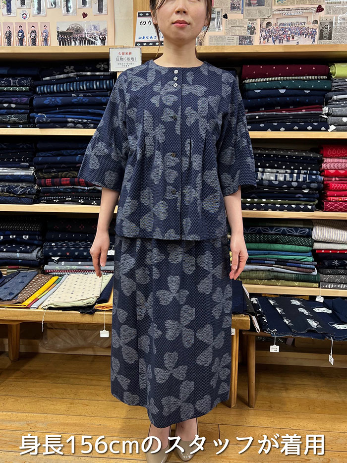 【同柄のスカートとのコーディネート】スカートの商品ページはこちら→【F1098】儀右ヱ門 久留米絣 Aラインスカート(三つ葉四つ葉 紺/白)ク942