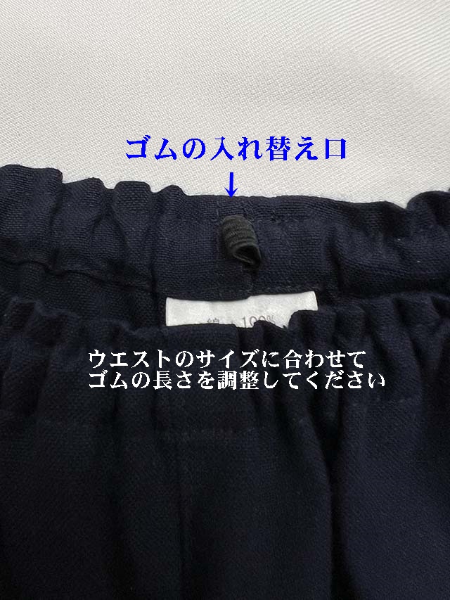 ウエストは、ゴムの入れ替え口からゴムの長さを調整して小さくも大きくもできます。