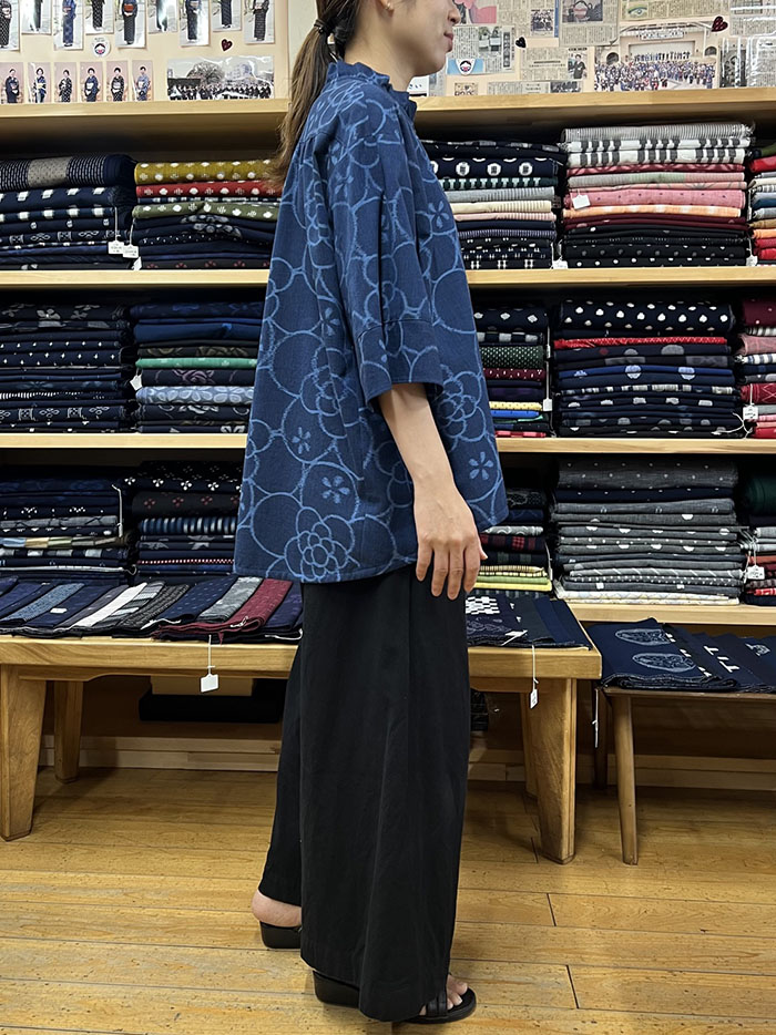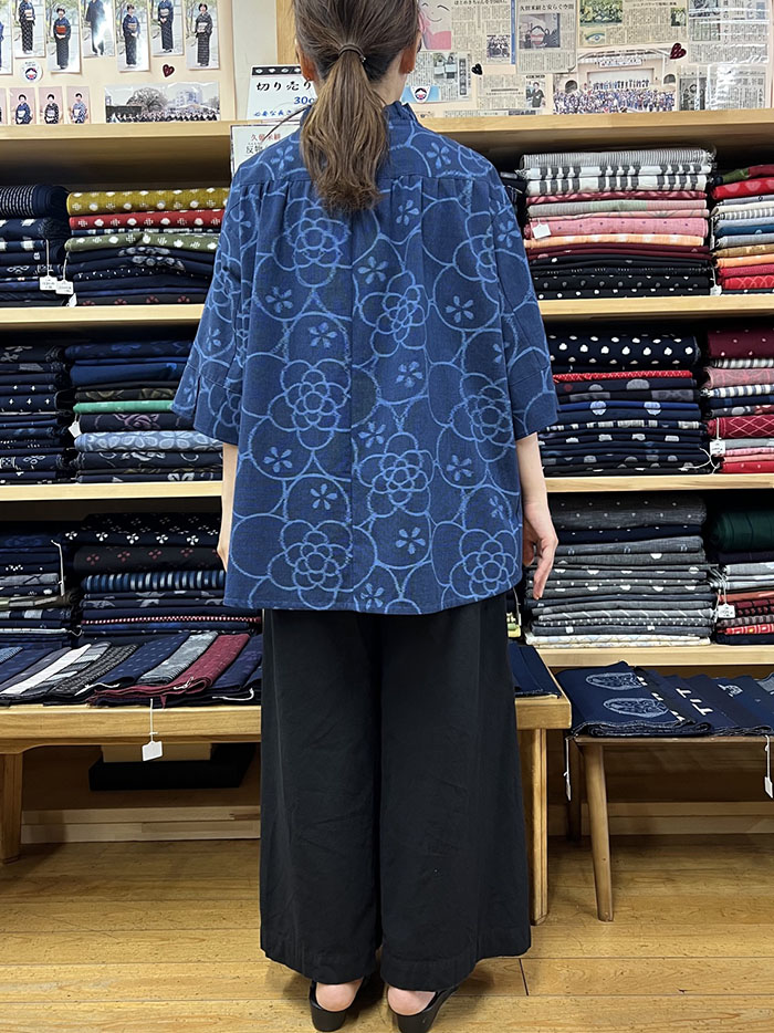 ブルーの色味が涼し気で素敵な、久留米絣のブラウスです。