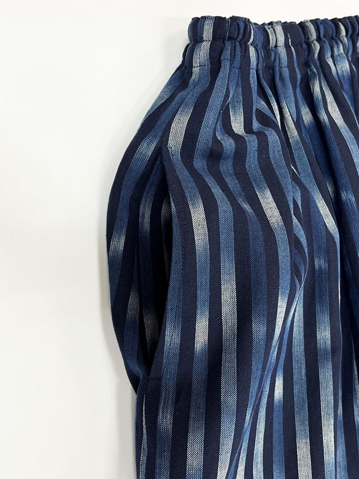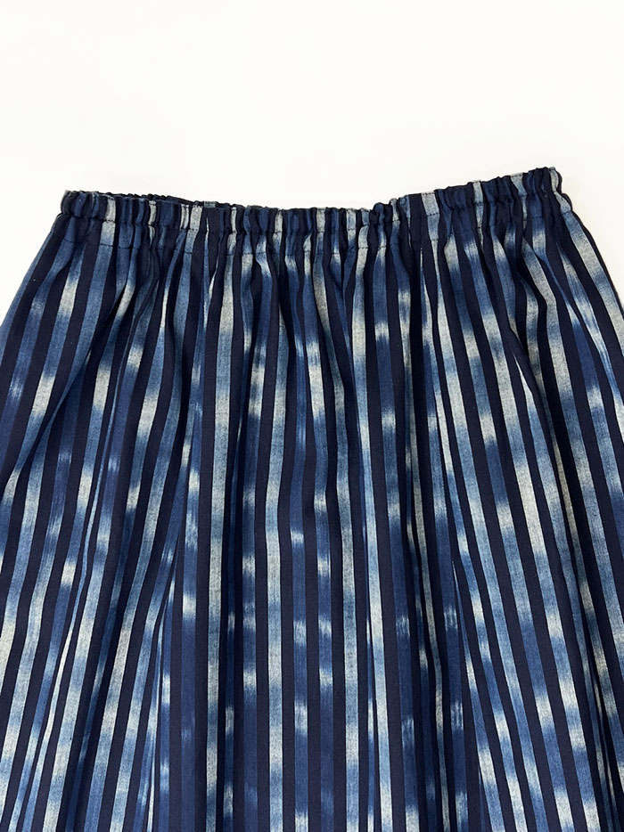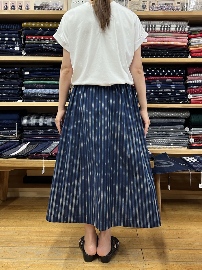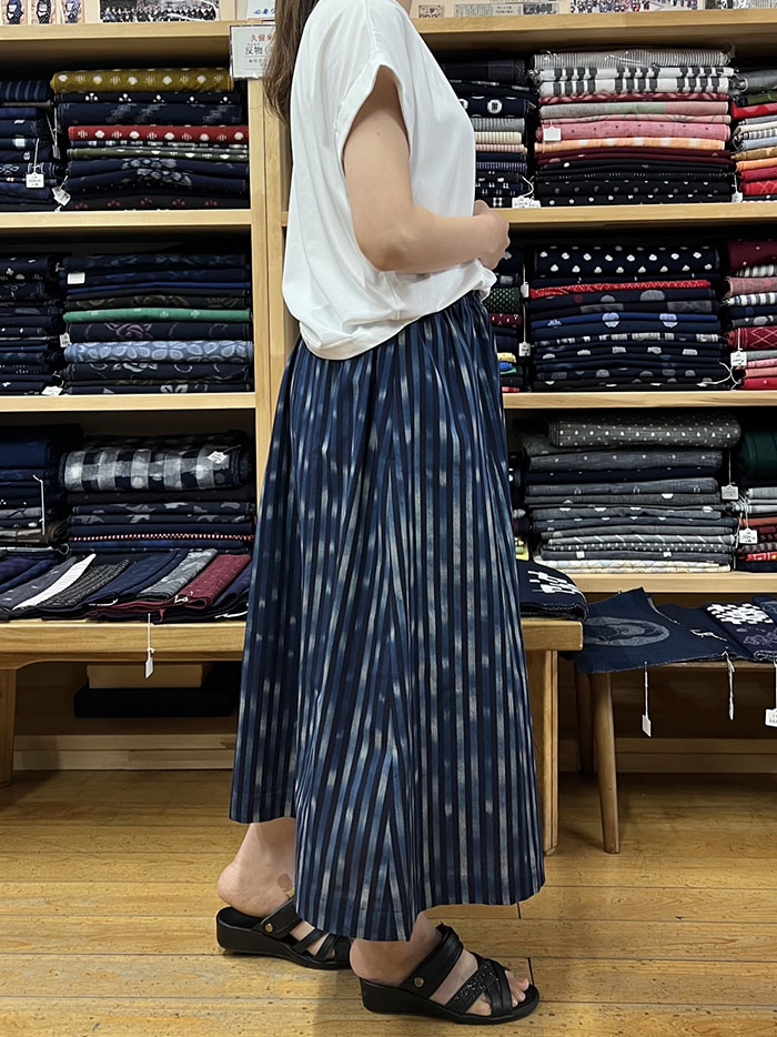 ウエスト総ゴムで履き心地抜群の、久留米絣のスカートです。