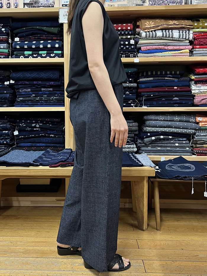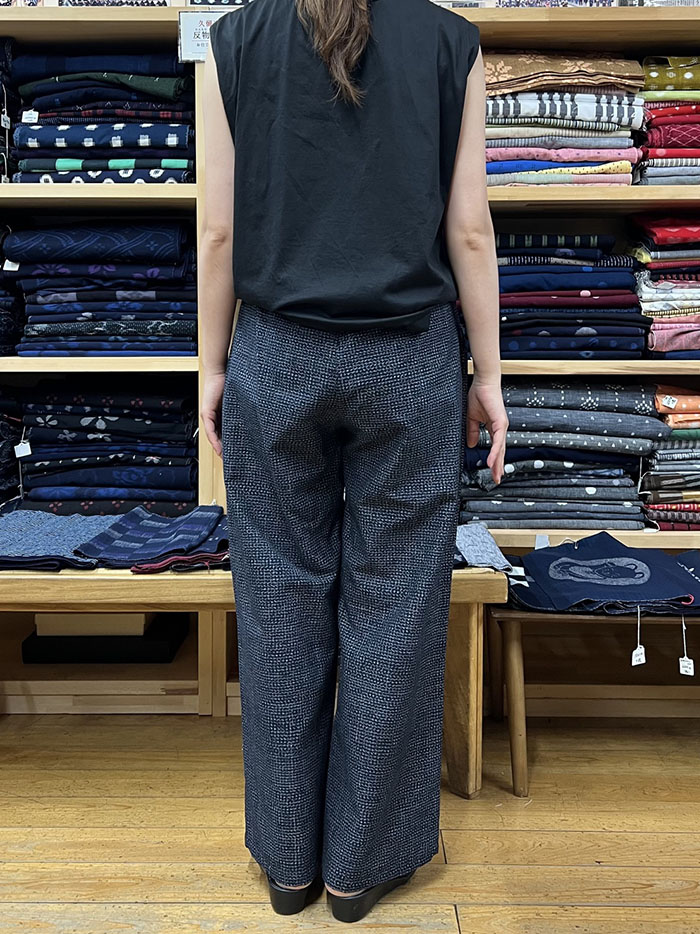 【F1199】男女兼用*久留米絣のストレートパンツ(文人柄)