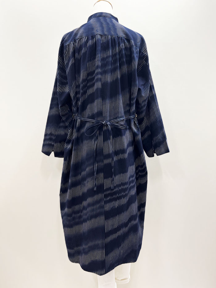 ボタンを留めて1枚で、またボタンを開けてさらっと羽織っても素敵な、久留米絣のロングブラウスです。