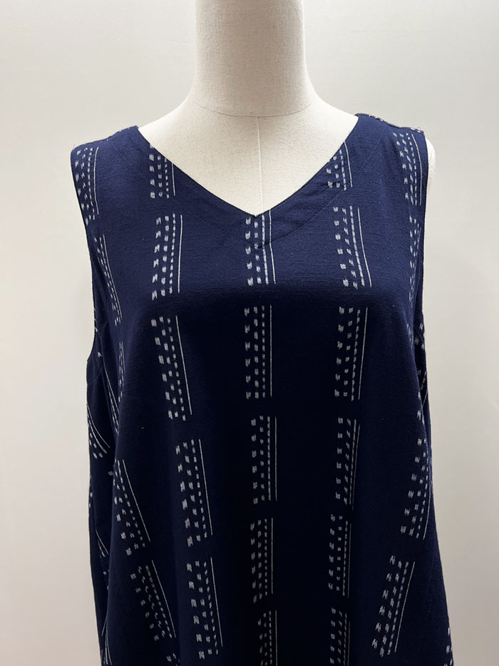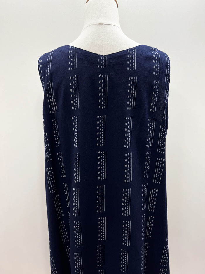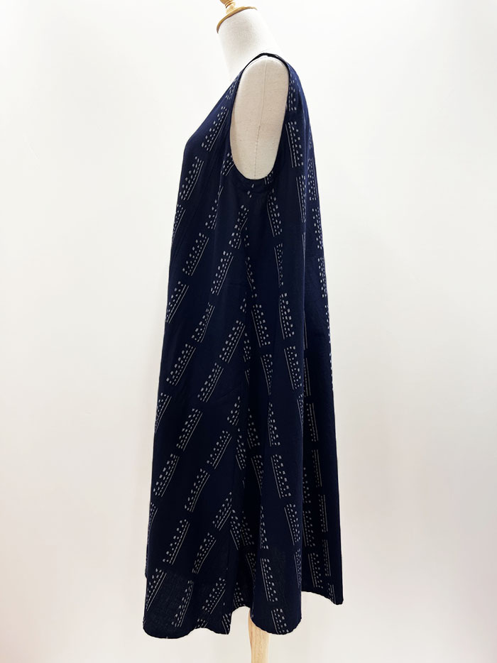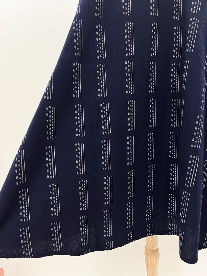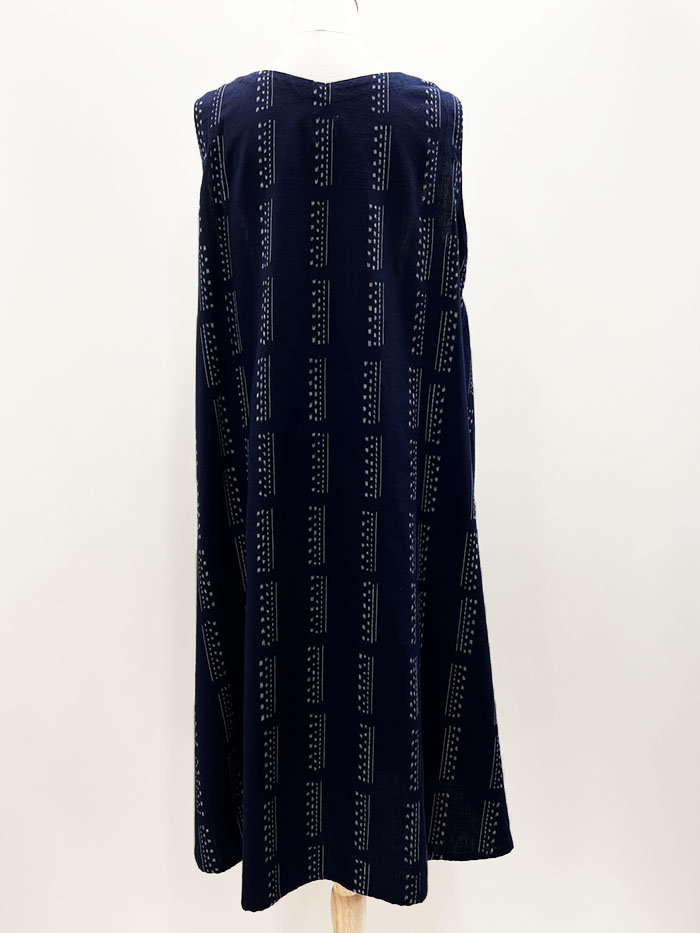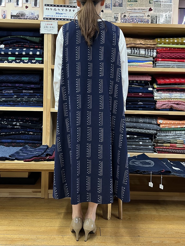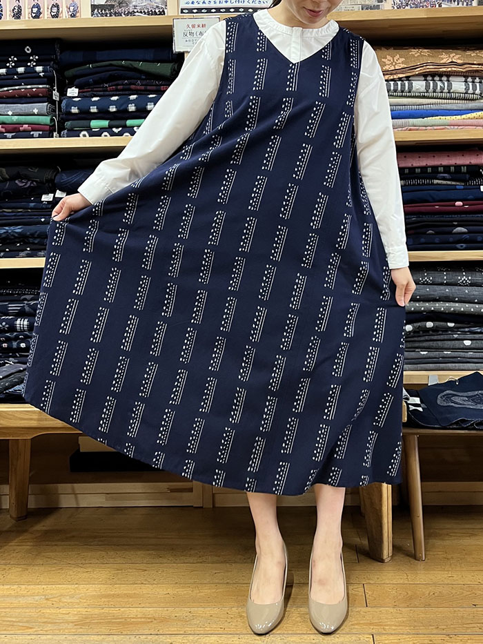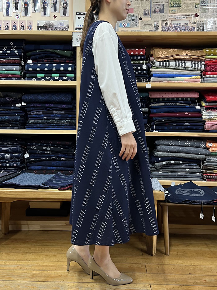 【F1200】儀右ヱ門 久留米絣ジャンパースカート(縞アレンジ 紺/白)Y9051