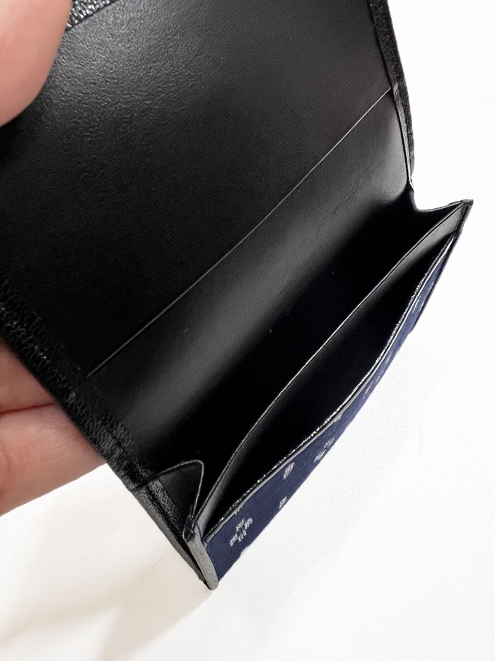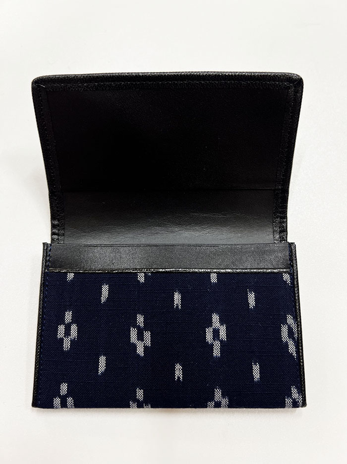 久留米絣と本革(絣を貼り付けている部分のみ合皮使用)の名刺入れです。