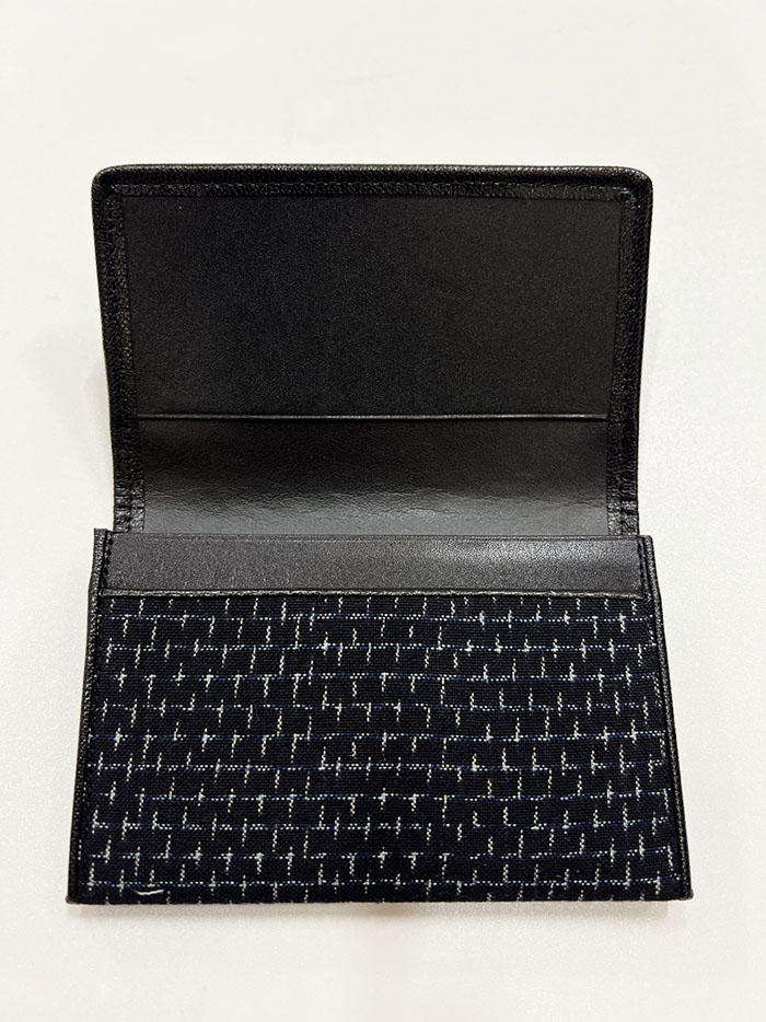 久留米絣と本革(絣を貼り付けている部分のみ合皮使用)の名刺入れです。