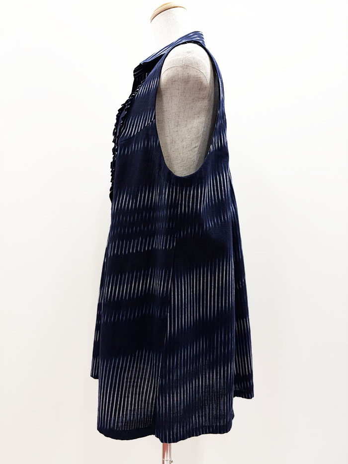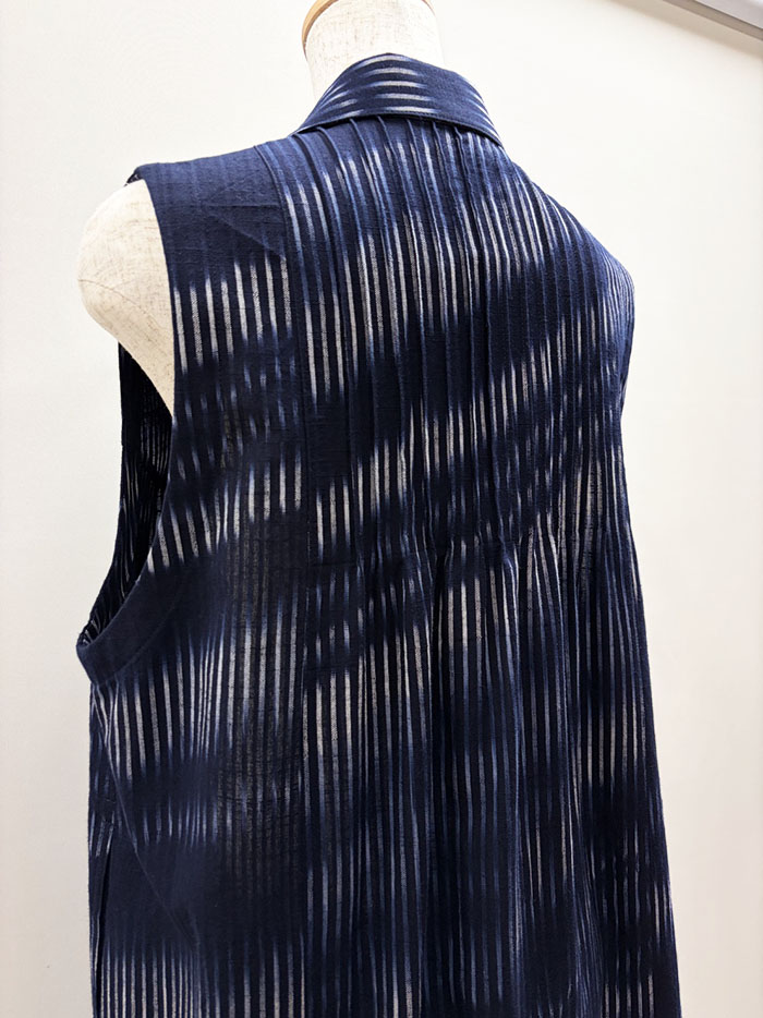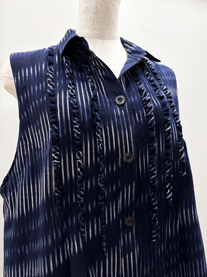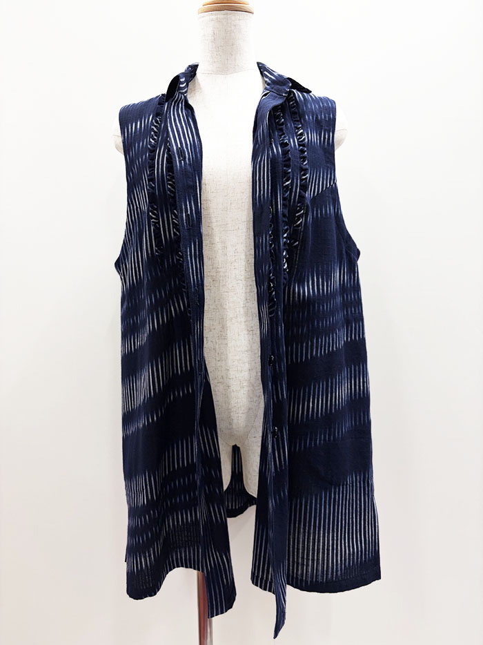 胸元のフリルと背面に施されたピンタックがオシャレなベストです。