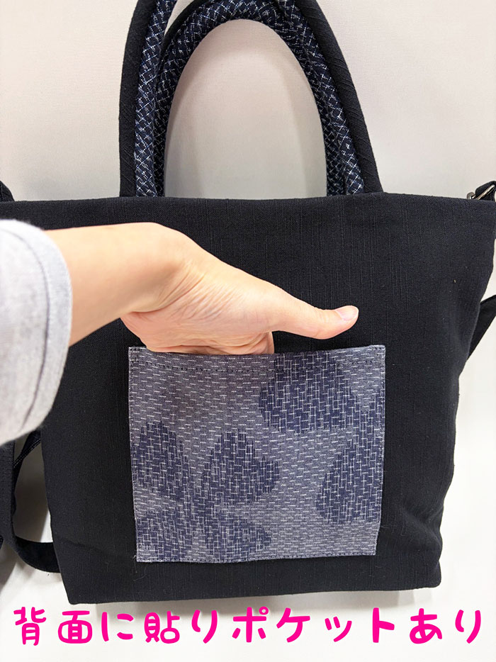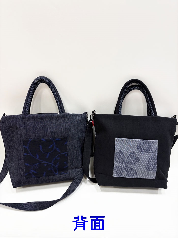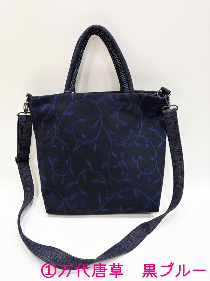 (①品名:ショルダートート 背中美人 万代唐草 黒ブルー)