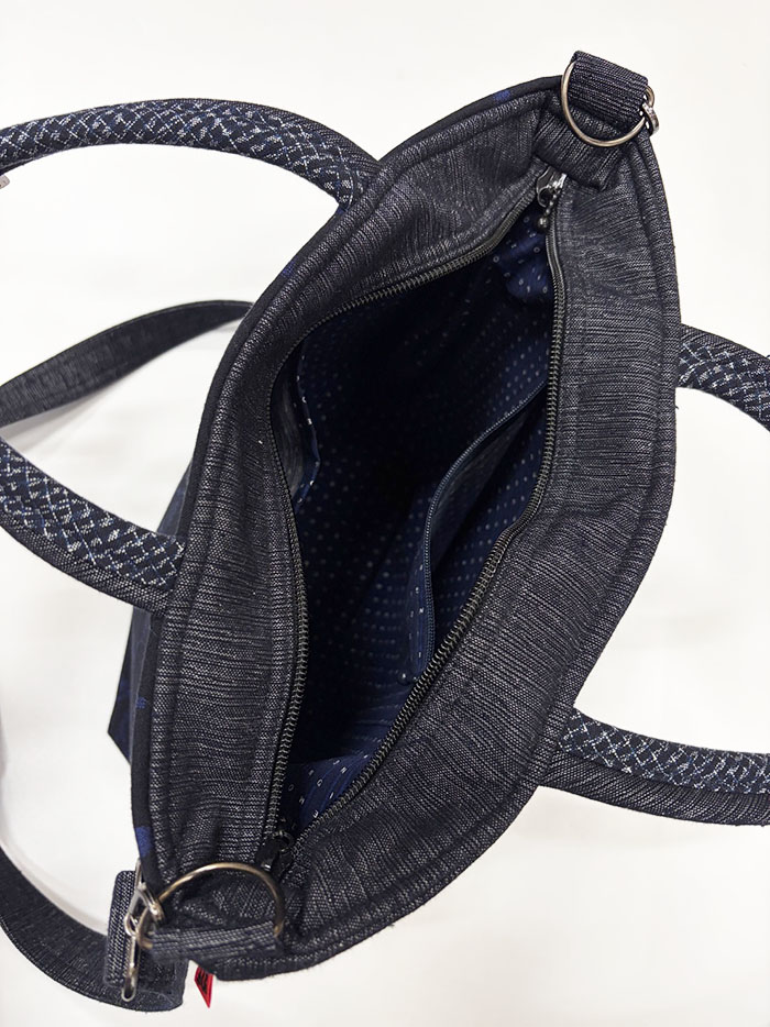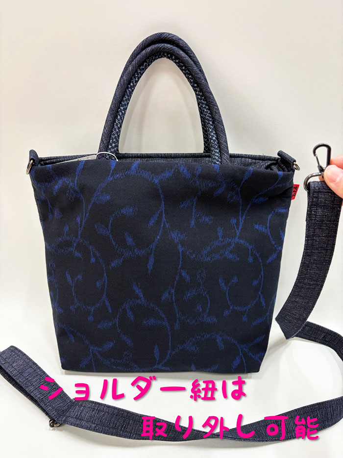 【BAG90】儀右ヱ門 久留米絣 ショルダートートバッグ(背中美人)万代唐草・三葉四葉