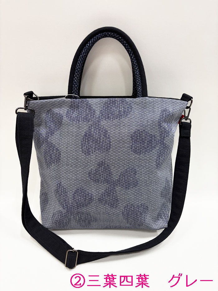 (②品名:ショルダートート 背中美人 三葉四葉 グレー)