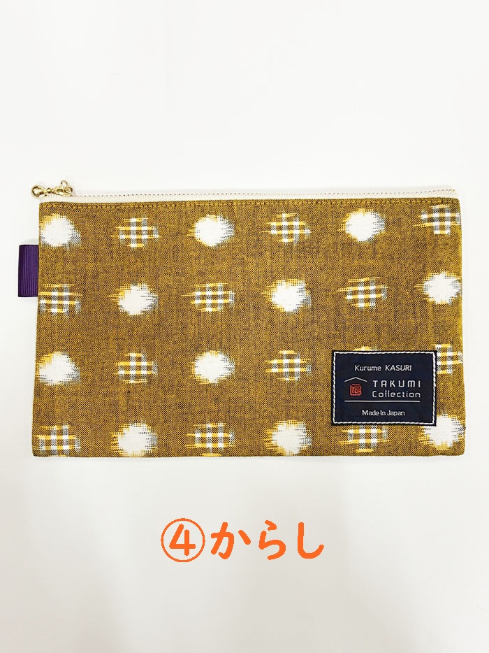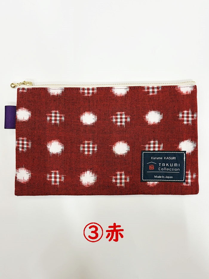 TAKUMI Collectionの、久留米絣「ぺたんこポーチ」です。