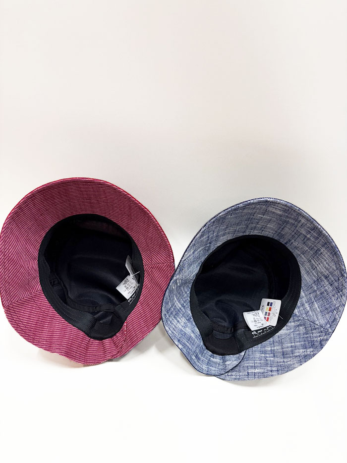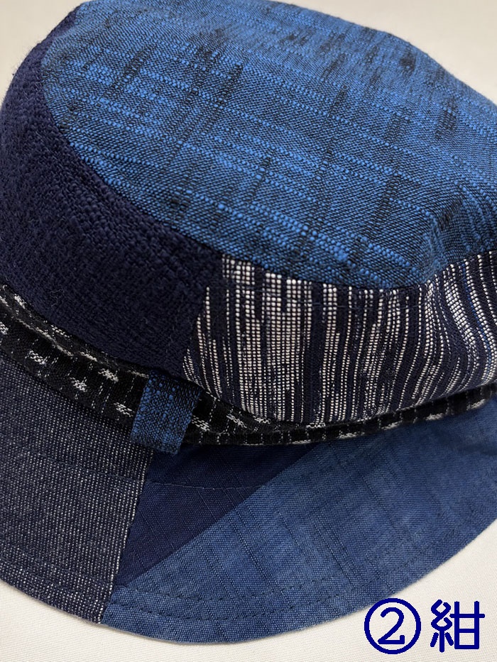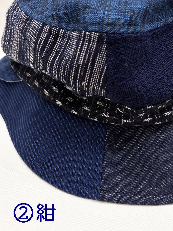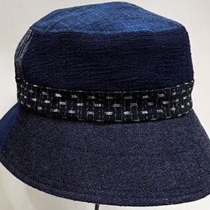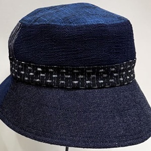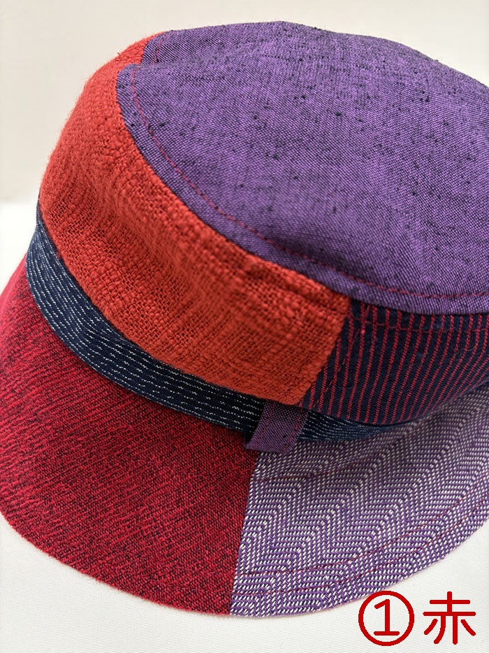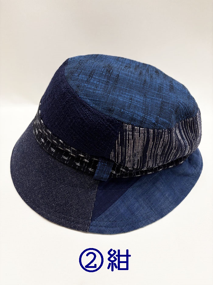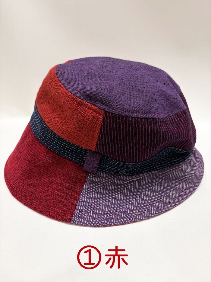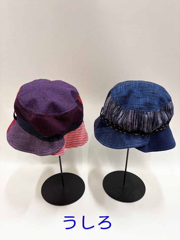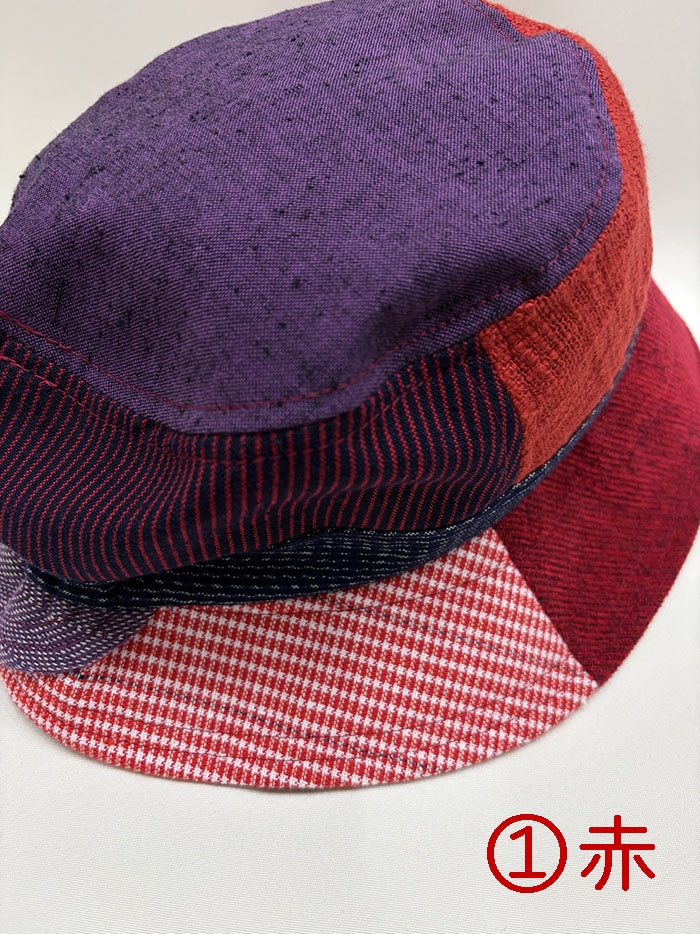 数種類の久留米絣の生地を組み合わせてつくった帽子です。
