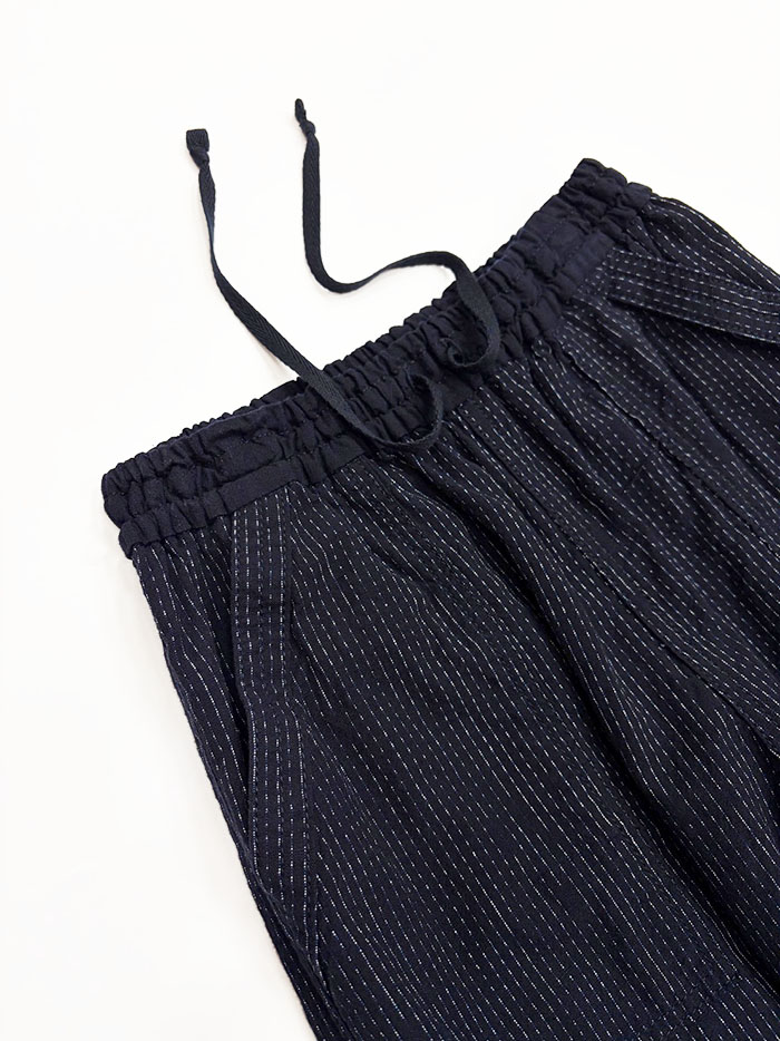 【F1287】儀右ヱ門(ギエモン) 「裏地なし」久留米絣もんぱん(Y7033-2 タテ文人 黒/白)Mサイズ・Lサイズ 「男女兼用」