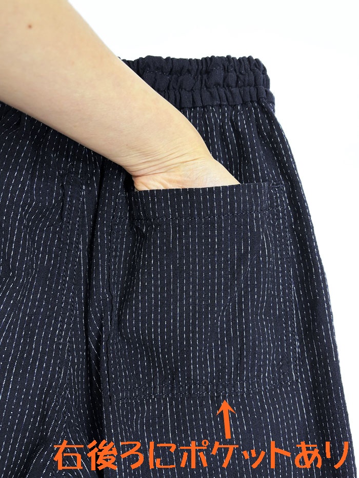 裾にはゴムが入っており、裾を絞って着用することもできます。