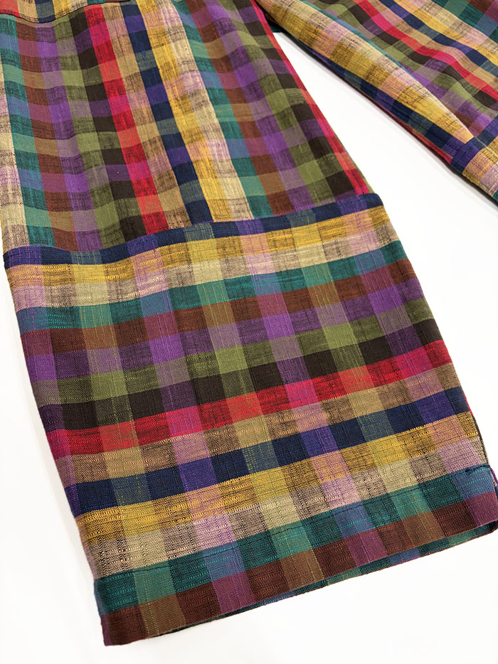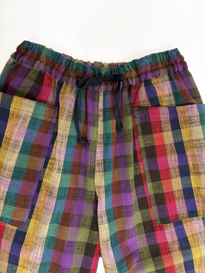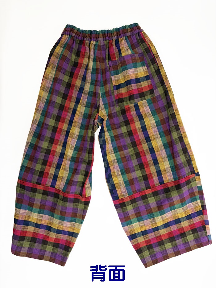 丸みのあるフォルムが可愛く、オシャレな久留米絣のパンツです。