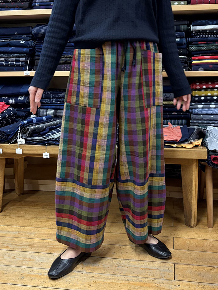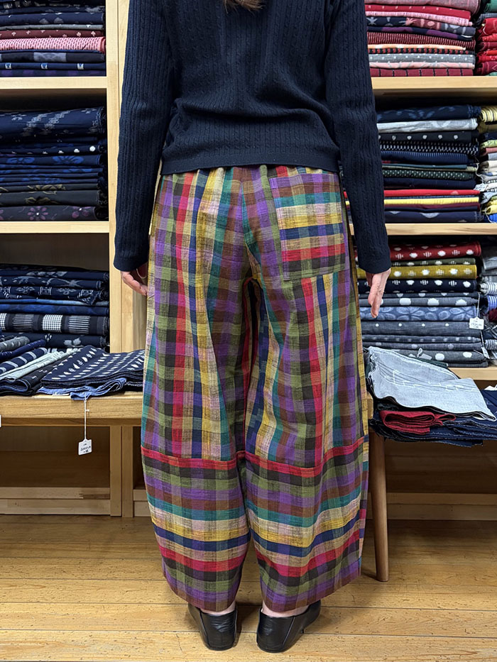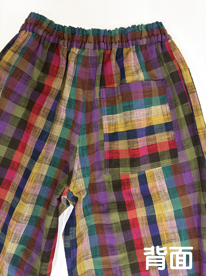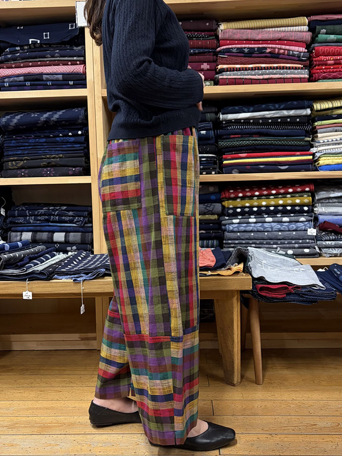 【F1308】儀右ヱ門(ギエモン) 久留米絣パンツ(白樺マルチカラフル)Y7052