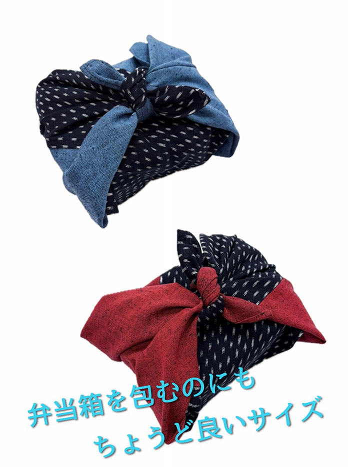 53.5cm×53.5cmの小風呂敷は、お弁当包みやランチクロス、ちょっとした贈り物のラッピングなどにちょうど良い大きさです。