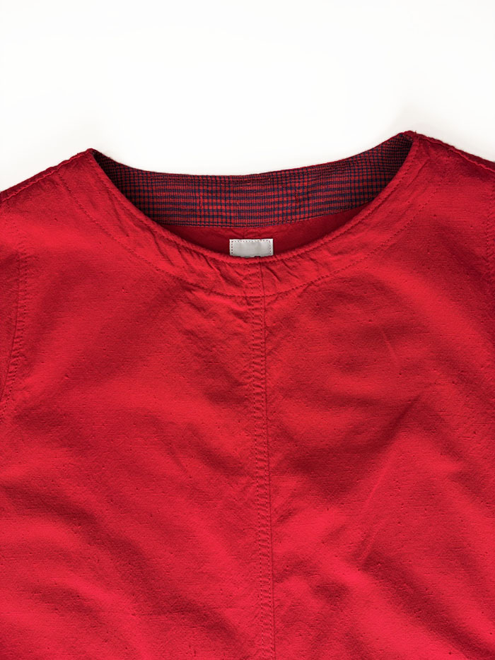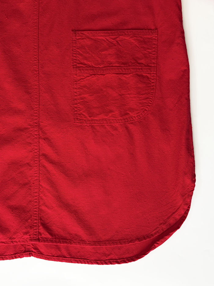 鮮やかな赤が素敵な、久留米絣の割烹着ブラウスが入荷しました。