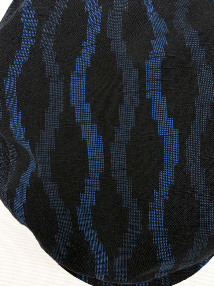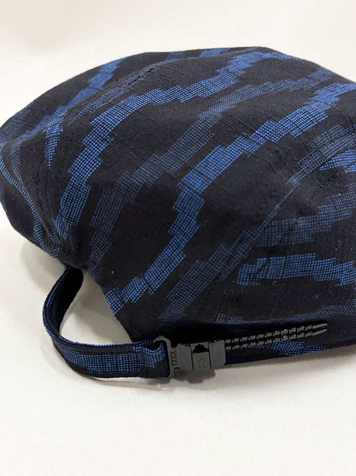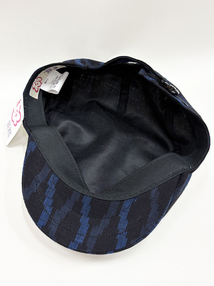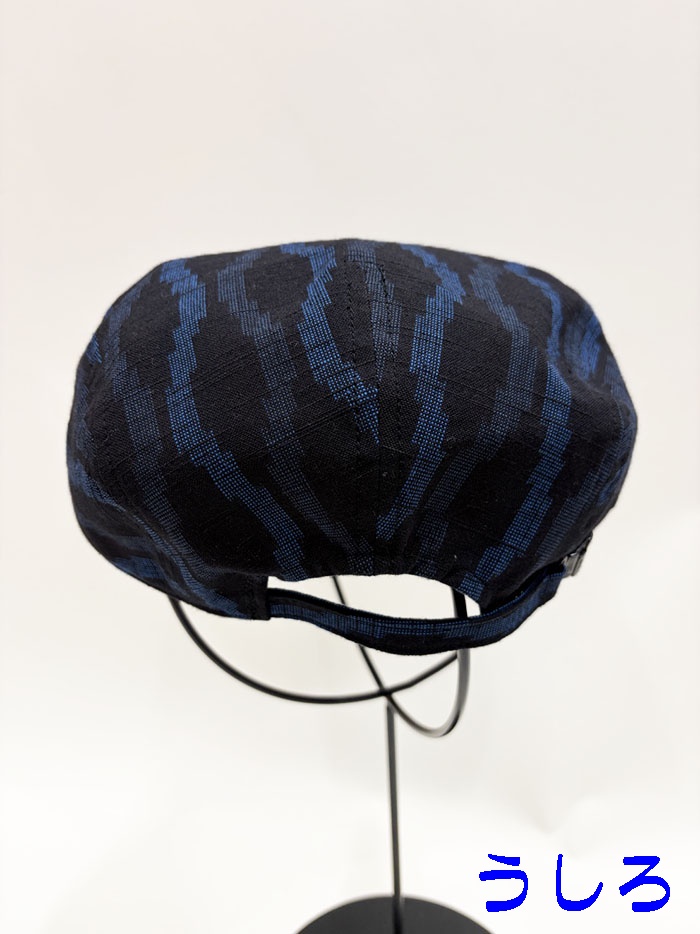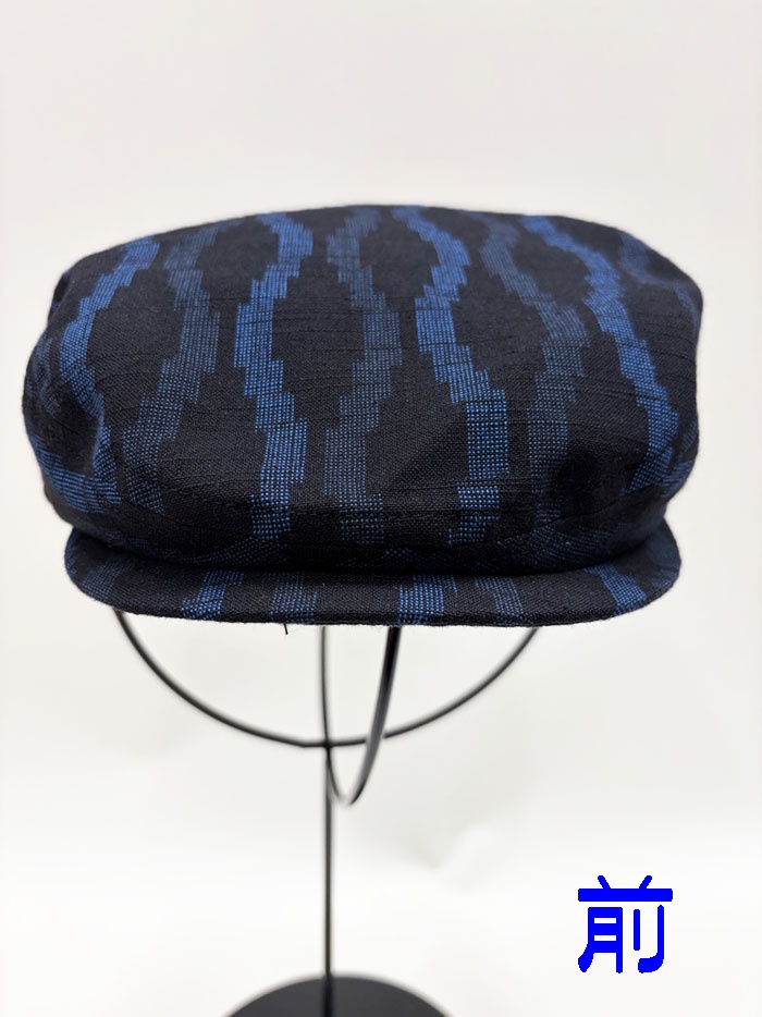 久留米絣(黒地にブルーの模様)のハンチング帽(紳士用)です。