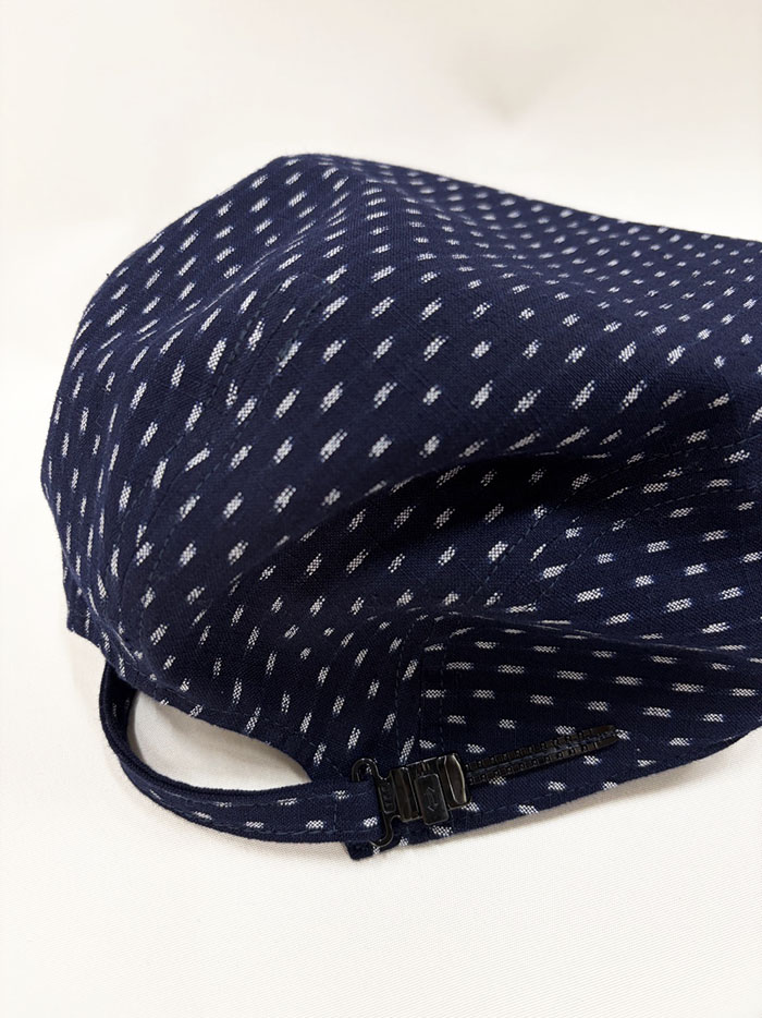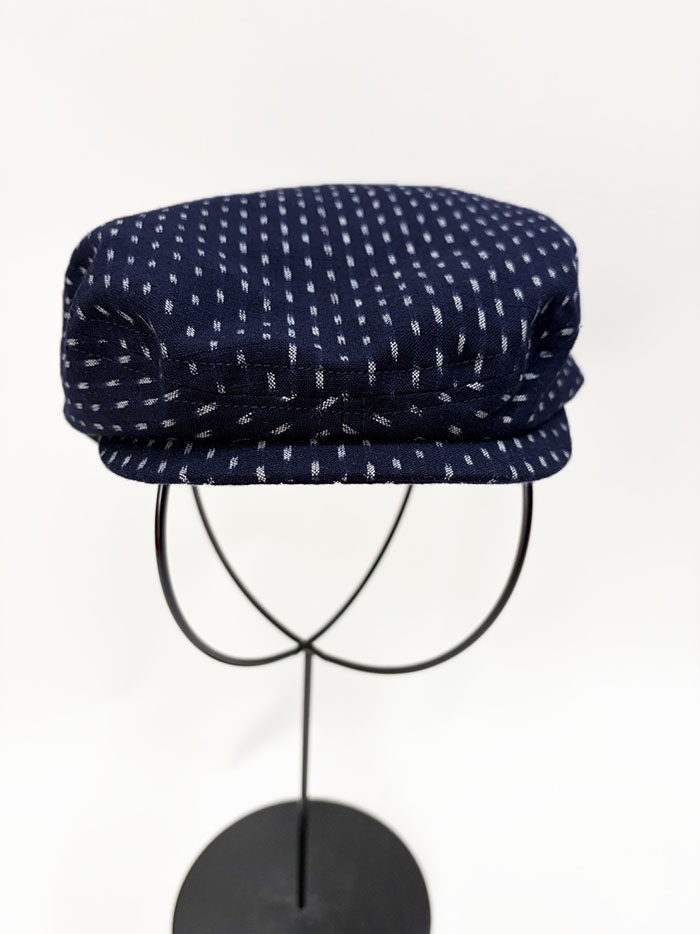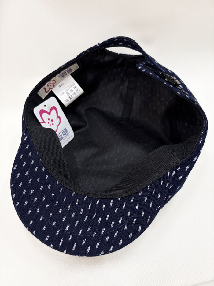 久留米絣(紺地に白のあられ柄)のハンチング帽(紳士用)です。