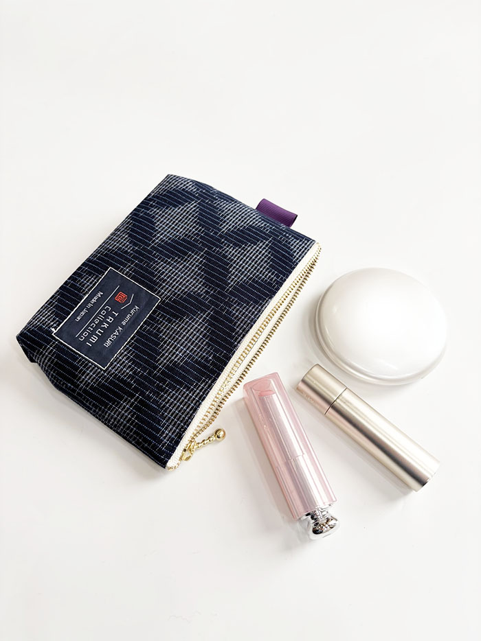TAKUMI Collectionの、久留米絣「台形ポーチ」です。