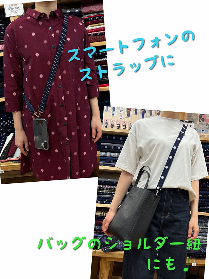 【ZA96】久留米絣のショルダーストラップ(①あられ柄 ②水玉柄)