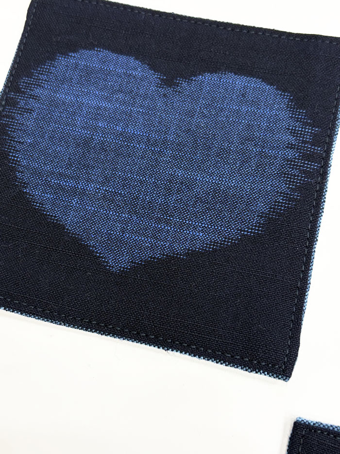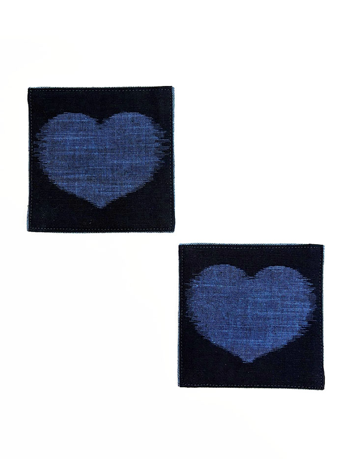 ハート柄の久留米絣のコースター「2枚セット」です。
