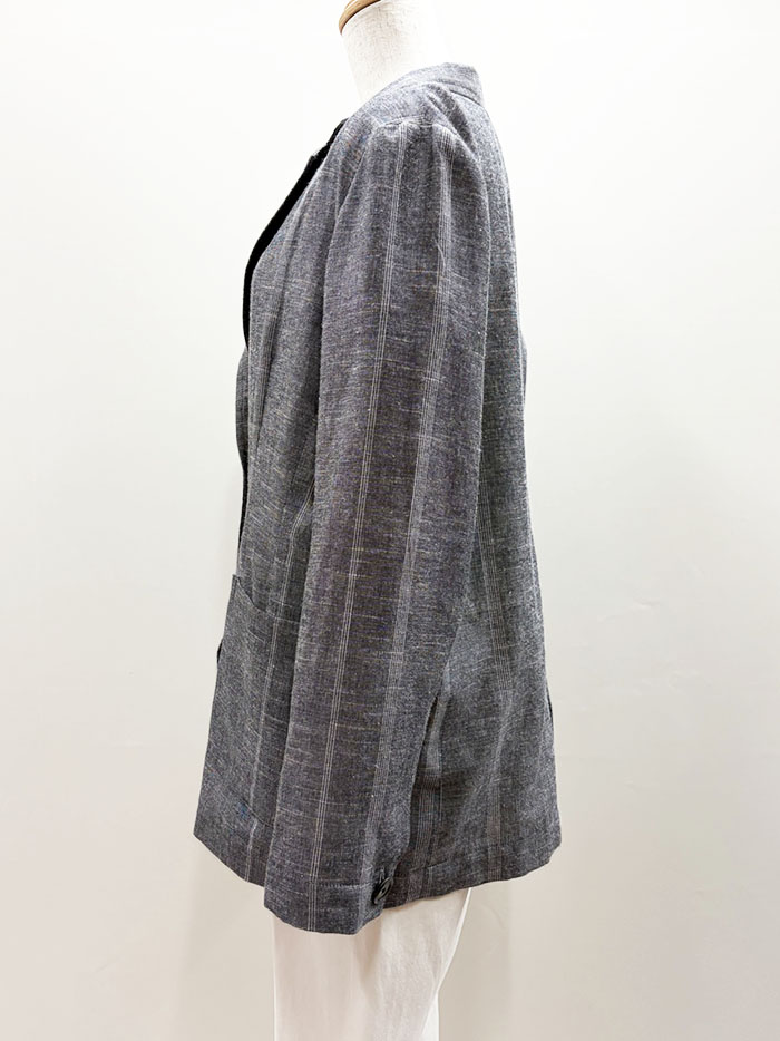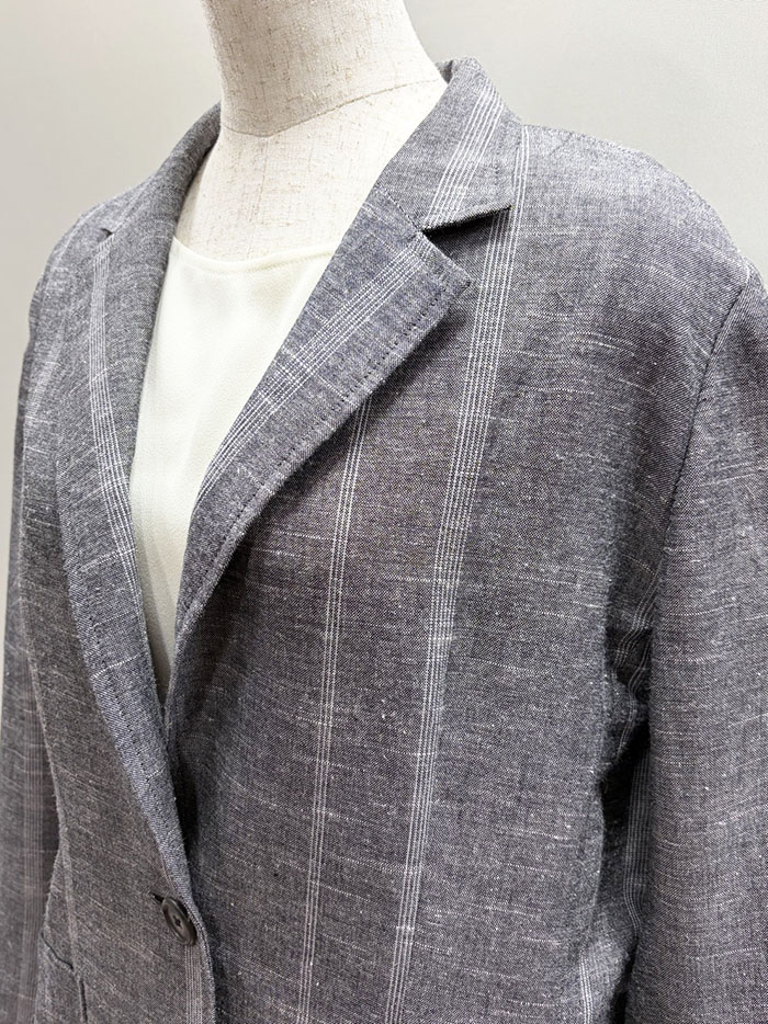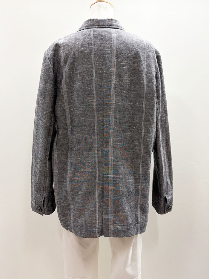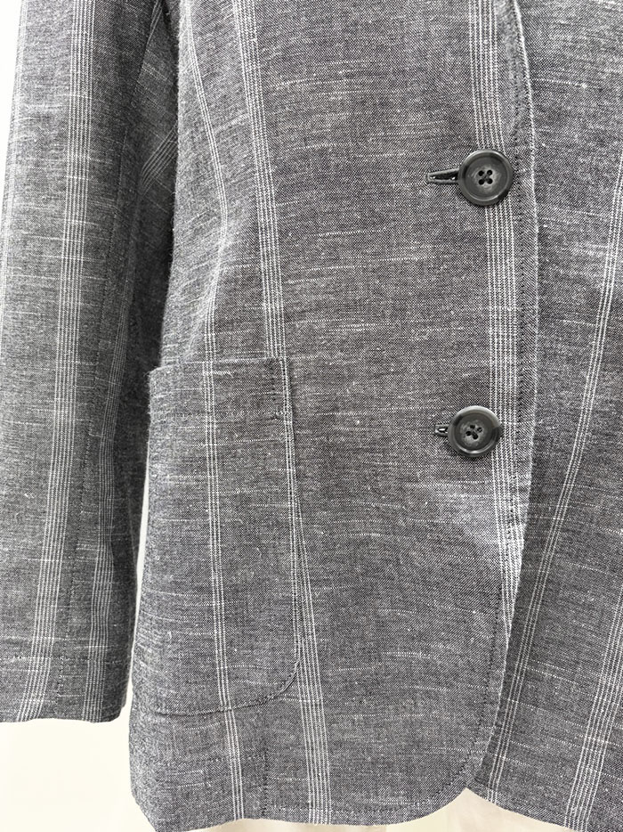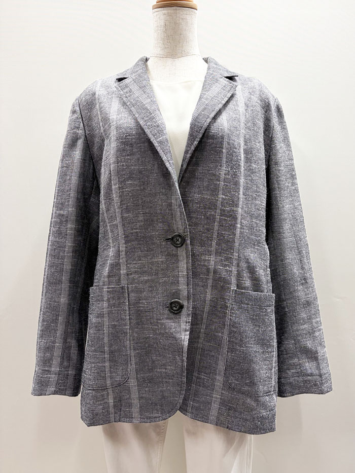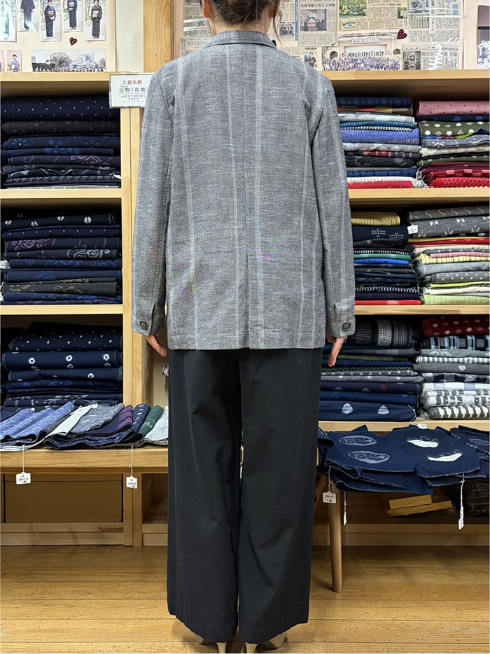 グレーに白の細ストライプが入った久留米絣でお仕立てしたジャケットです。