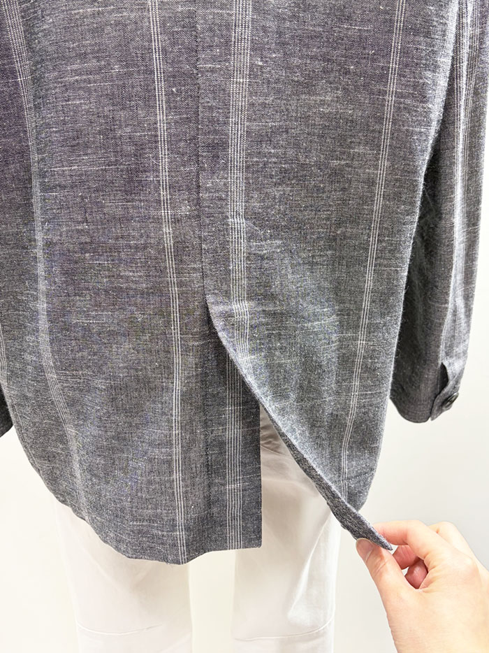 – 背面センターベントあり(背面裾中心に重なったスリット入り)