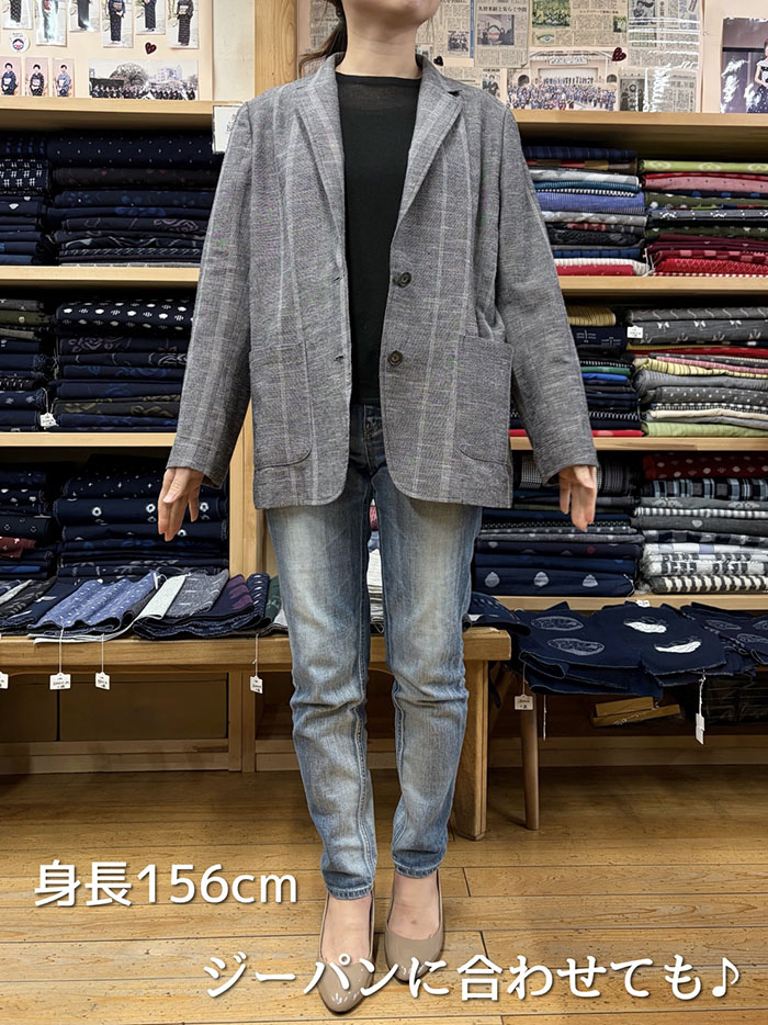 こちらのジャケットは当店でお仕立てしていますので、サイズを変えたり、柄を変えてお仕立てすることも可能です。