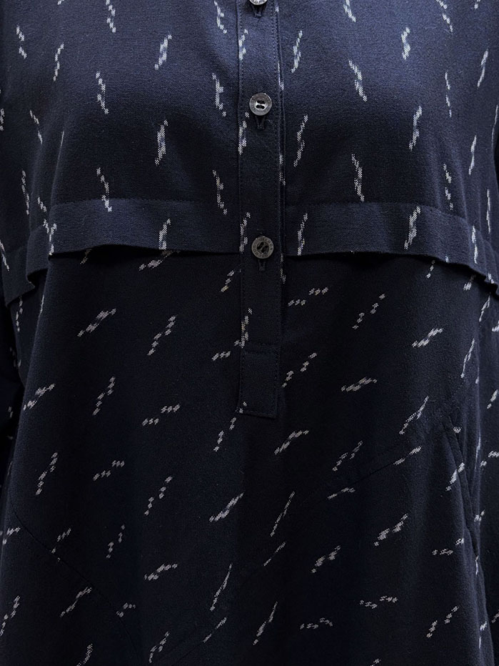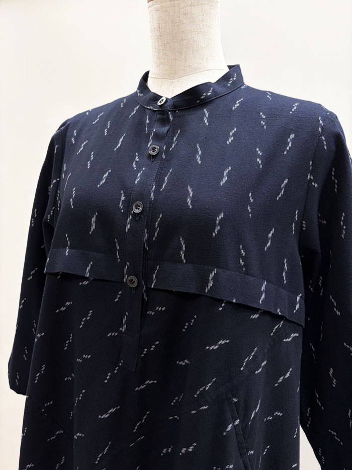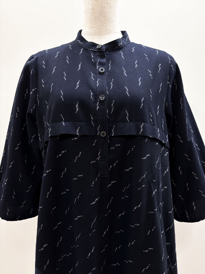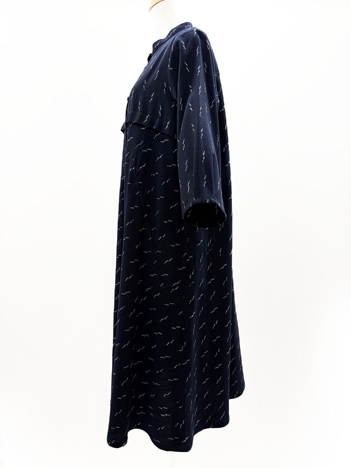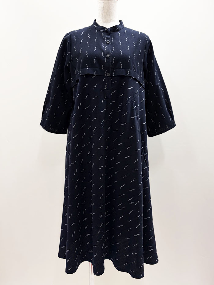 濃紺地に白の模様が上品な、久留米絣のワンピースです。