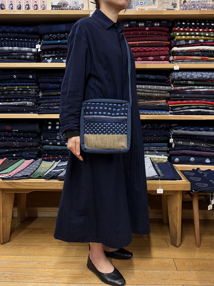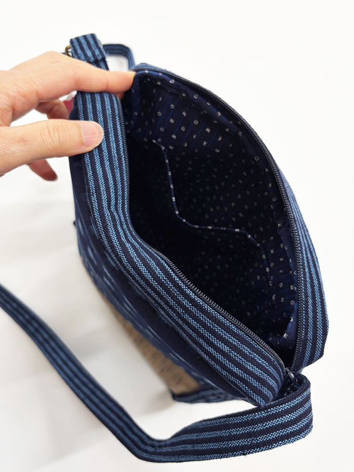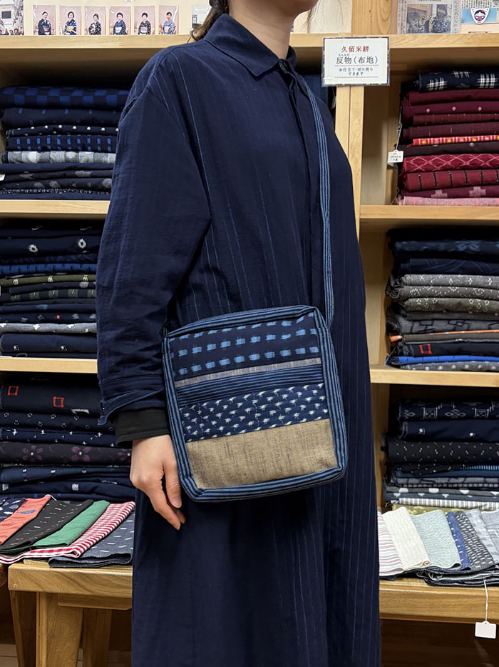 軽くて毎日使いたくなる久留米絣の斜め掛けバッグです。