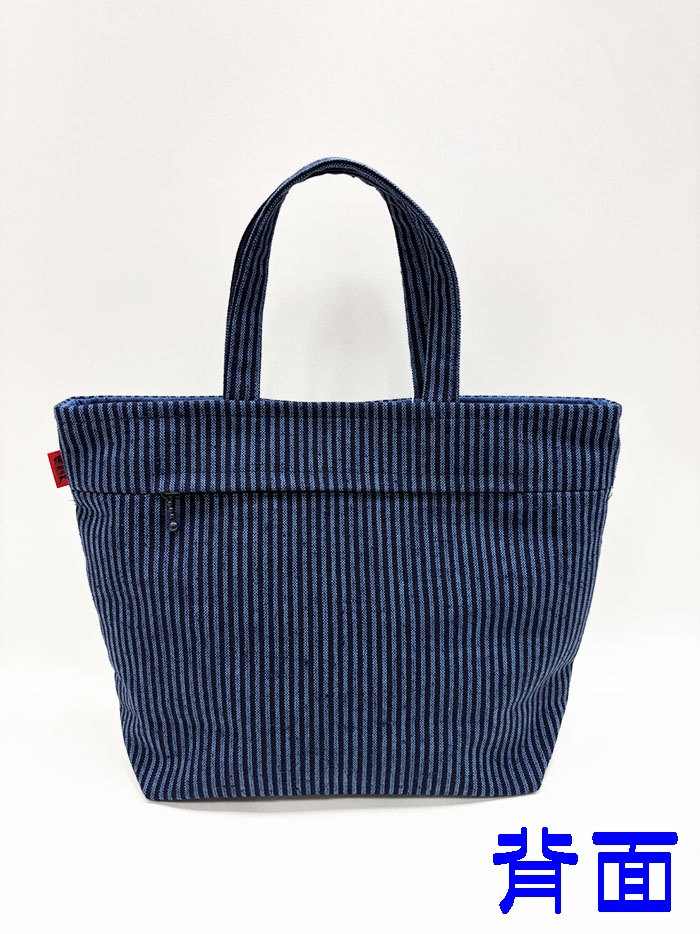 背面はシンプルなストライプ模様で、その日のコーディネートによってストライプの面を外側にして持っていただいても♩